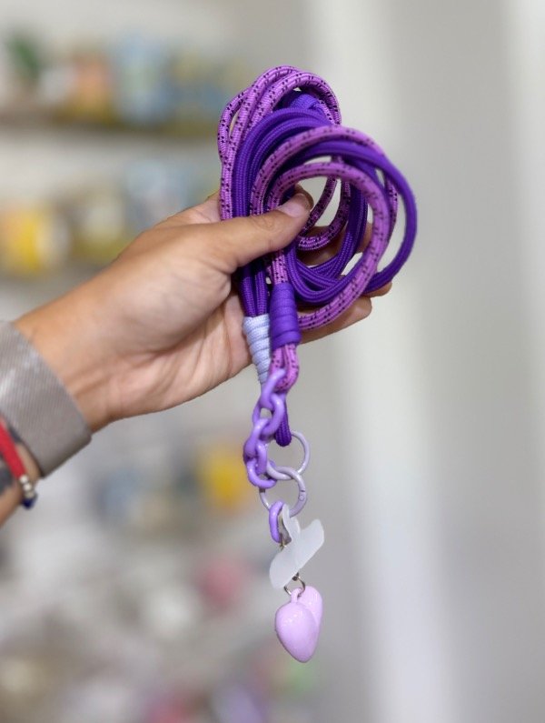 Correa larga violeta + llaverito corazón